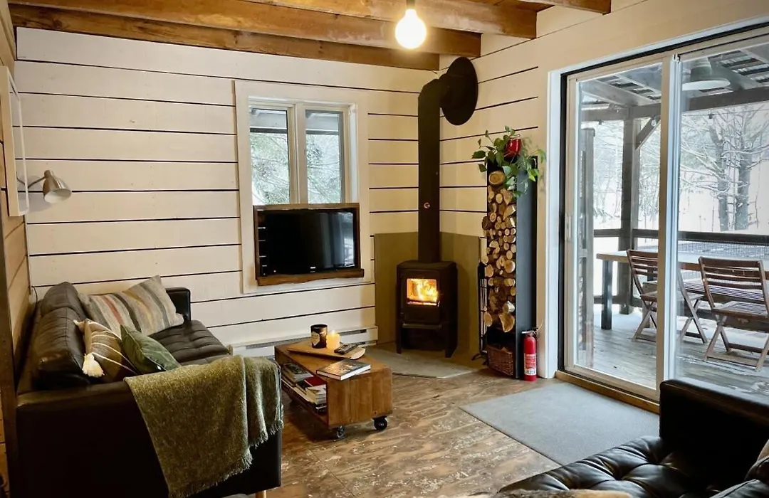De 1-slaapkamer Le 10 - Spa Sauna Shower Bromont Lac-Brome Villa is op afstand van 3 km van Les Champs Vallons gelegen en nodigt gasten uit om te ontspannen in een bubbelbad en een sauna. Het chalet heeft parkeerplaatsen en een zonneterras met uitzicht op de rivier.